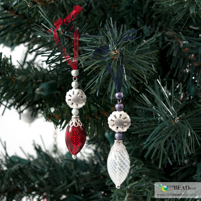 Décorations pour arbre de Noël composées de billes de verre soufflé, de billes de métal, de plastique et de ruban