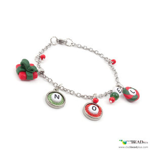 Bracelet composé de breloques faites d'éléments divers montées sur une chaîne