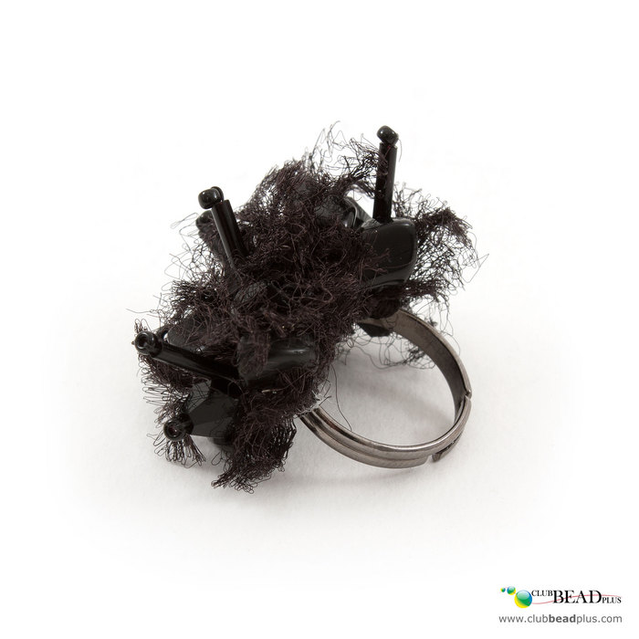 Ring made of metallic ribbon and various beads woven on a base of metal grommets