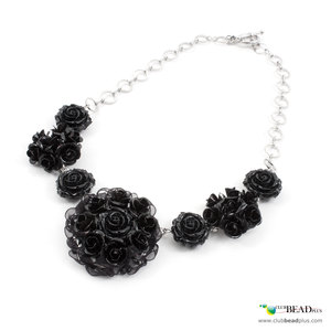 Necklace made of flower shaped beads and round links made with various flowers weaved on pierced domes and tied to the neck with chain