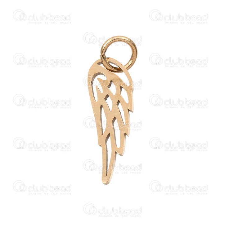 1720-2112-64GL - Spiritual Stainless Steel 304 Charm Angel's Wing 16.5x5.5x0.9mm with Ring Gold Plated 10pcs 1720-2112-64GL,gold,montreal, quebec, canada, beads, wholesale