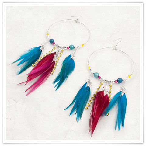 Répétez cette étape pour obtenir un total de 6 pendants de plumes, dont 4 de couleurs turquoise et 2 de couleur rose.