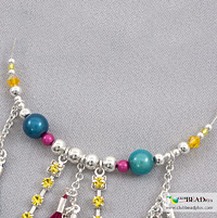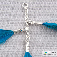 Mesurez et coupez une section de 2 cm de chaîne rolo. Fixez-y 3 bouquets de plumes à l’aide d’anneaux simples de 4 mm. Placez les bouquets sur la chaîne tel qu’illustré, à partir de l’extrémité, puis en laissant 2 maillons libres entre chaque bouquet. À l’autre extrémité de la chaîne, posez un autre anneau de 4 mm.