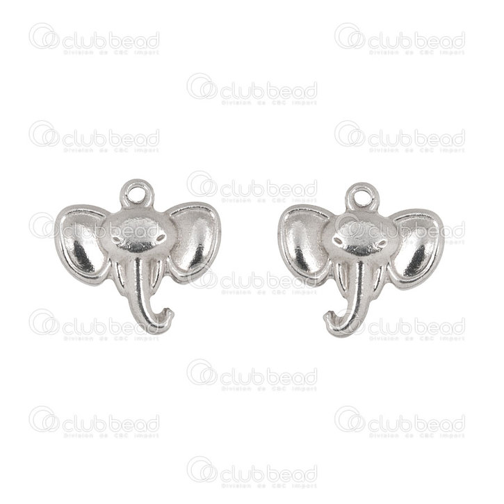 1720-2110-18 - Animal Stainless Steel Charm Elephant Head 12x15mm Natural 10pcs 1720-2110-18,Éléphant,montreal, quebec, canada, beads, wholesale