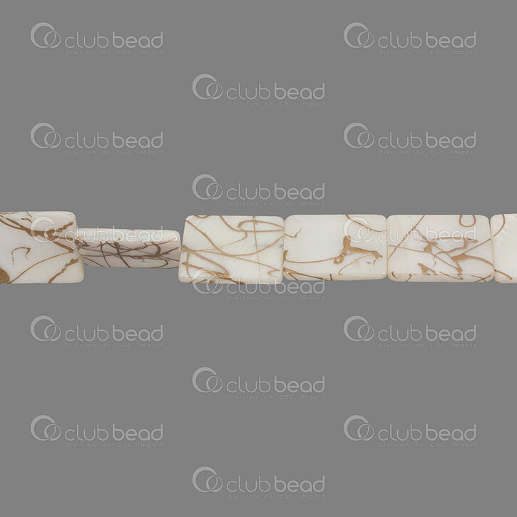 1114-0072-20 - Shell Bead Flat Rectangle 20x15x3mm White AB with Gold Line 0.5mm hole 15" String !LIMITED QUANTITY! 1114-0072-20,Billes rectangles,montreal, quebec, canada, beads, wholesale