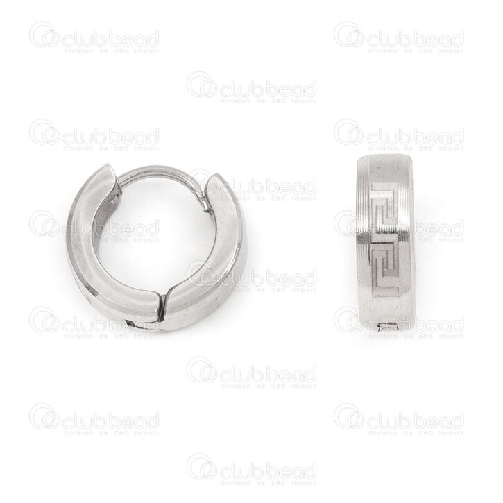 4007-0102-1151 - Stainless Steel 304 Earring Leverback Round 13.5x4mm with Greek Key Design Natural 4pcs (2pairs) 4007-0102-1151,Key,montreal, quebec, canada, beads, wholesale