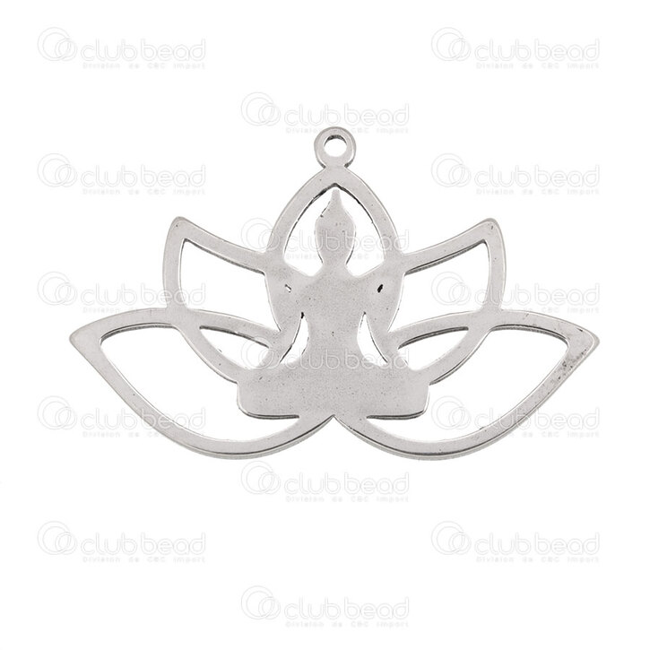1720-2012-73 - Spiritual Stainless Steel Pendant Lotus Flower and Yoga 20x31.5x1.5mm with 1.2mm loop Natural 20pcs 1720-2012-73,Lotus,montreal, quebec, canada, beads, wholesale