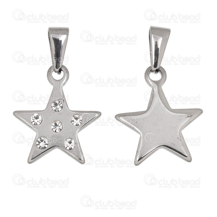 1720-4016 - Stainless Steel Pendant Star 19.5x16.5x2.5mm with Crystal Cubic Zircon and Bail Natural 2pcs 1720-4016,Pendentif etoile,montreal, quebec, canada, beads, wholesale