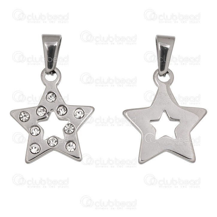 1720-4017 - Stainless Steel Pendant Star 20x17x2.5mm Hollow with Crystal Cubic Zircon and Bail Natural 2pcs 1720-4017,Pendentif etoile,montreal, quebec, canada, beads, wholesale