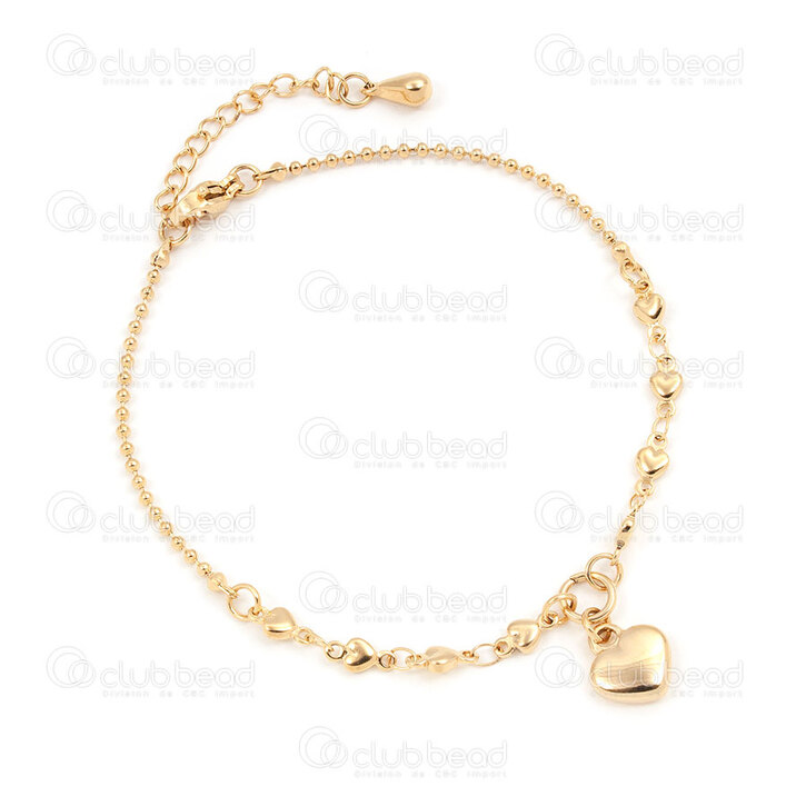 4007-0213-97GL - Stainless Steel 304 Fancy Cable Heart Chain and Ball Chain 1.5mm with Charm Heart 8x9x3mm Bracelet  19cm (7.5in) with Chain Extender 40mm Gold Plated 1pc 4007-0213-97GL,chaîne boule,montreal, quebec, canada, beads, wholesale