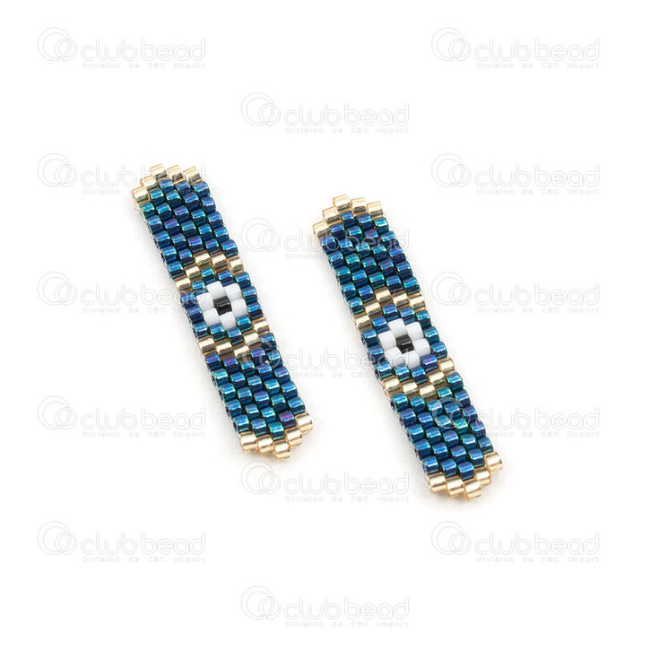 1411-5001-02 - Miyuki Component Stripe 32x6.5x2mm Evil Eye Design Metallic Blue-White-Gold without loop 2pcs 1411-5001-02,design.com,montreal, quebec, canada, beads, wholesale