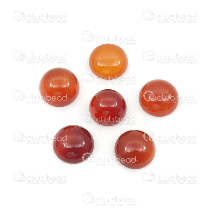 1112-1012-01 - Semi-precious Stone Cabochon Red Agate 12MM Round 5MM Dome 7gr 6pcs 1112-1012-01,dom,montreal, quebec, canada, beads, wholesale